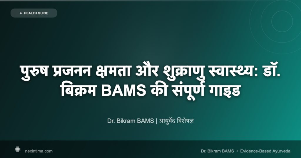 डॉ. बिक्रम BAMS द्वारा — शुक्राणु गिनती, Varicocele, अश्वगंधा, शिलाजीत और जीवनशैली से male fertility सुधार की वैज्ञानिक गाइड।